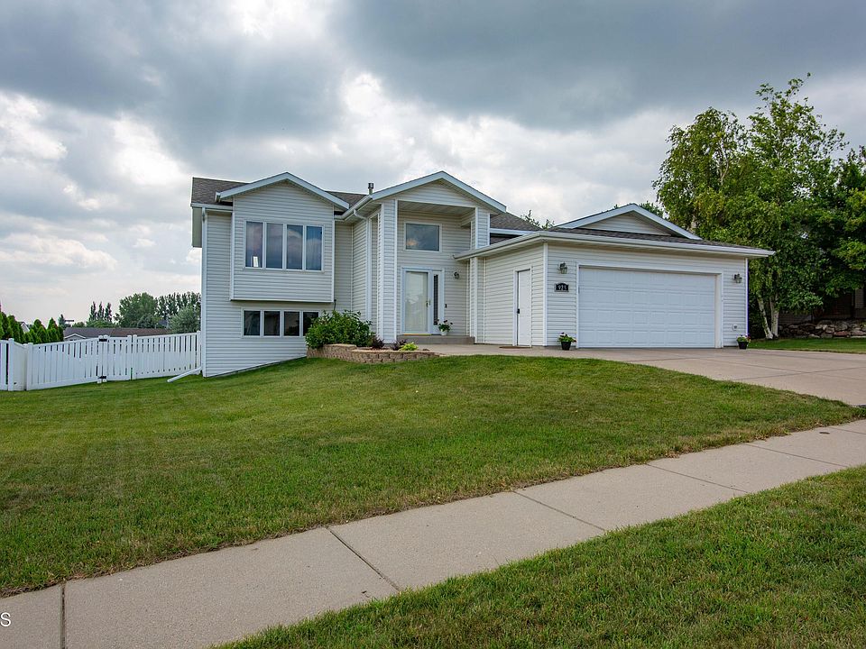 Welcome to your dream home in NW Bismarck! This stunning 4 bedroom, 2 bathroom split-level home is the epitome of comfort and style. As you step into the spacious foyer, you'll immediately feel the warmth and light that permeate the entire home. Upstairs the main living area features vaulted ceilings, creating a welcoming and comfortable atmosphere for everyday living and entertaining. The dining room flows seamlessly from the living room, and the convenient layout of the kitchen features a large pantry and breakfast bar. Just off the dining room, enjoy summer meals on the maintenance-free deck in the privacy of your fully-fenced backyard. The split-level design provides distinct spaces for relaxation and privacy, with a large family room, two additional bedrooms, and the laundry room on the lower level. Don't miss the opportunity to own this fantastic property that perfectly blends comfort, style, and functionality! Hard flooring throughout, with carpeting in lower two bedrooms. Flooring updated within last 5 years, new roof in 2023. Conveniently located near dining, shopping, banking, schools and parks. Call your favorite realtor for a showing today!