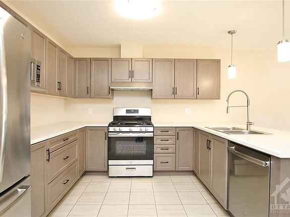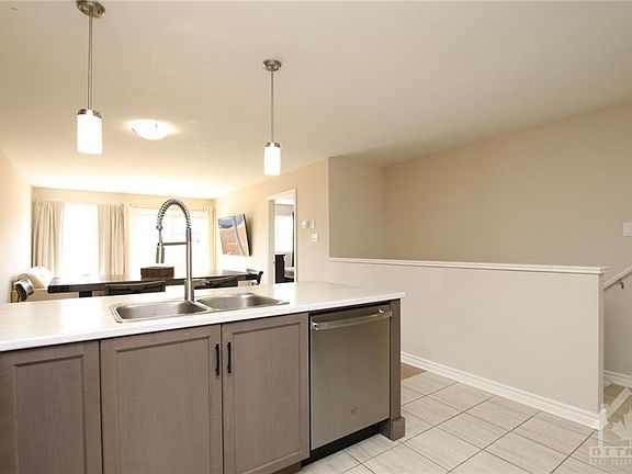 Immediate availability - Your new townhome in the Mill Run neighborhood of the thriving town of Almonte with shopping, recreation and playground nearby. This nearly new unit features a spacious living / dining area open to the kitchen ,the primary bedroom with a full upgraded en-suite bath, second bedroom and 2nd full bath and convenient main level laundry with gas fired dryer complete the main level. The lower level is mostly finished with a recreation room and a third bedroom plus a future bath roughed in, drywalled and primed , trim and doors installed, waiting for your finishing choices of paint and flooring. Ample space in the utility, storage area with a workshop available. Rear yard is fully fenced. Single attached garage with inside access and paved parking area in front.