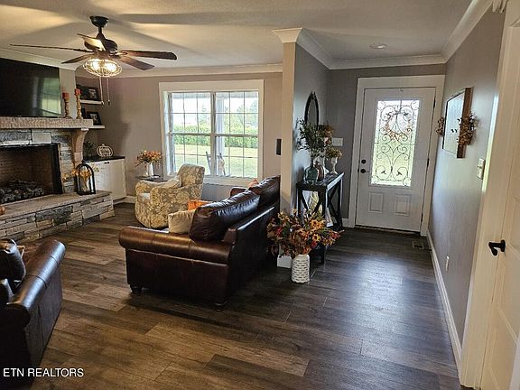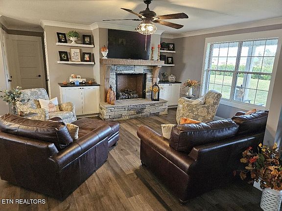 Back on market due to buyer finance falling through. Motivated seller. Enjoy breathtaking mountain views with this completely remodeled, one-level, brick rancher in the heart of greenback. This 2,440 sq ft. home is sitting on 1 acre and offers all hardwood/tile flooring, gas fireplace, granite throughout, gas stove top, double ovens, and pull-out kitchen drawers. Home has 3 bedrooms, 3 1/2 bathrooms with the addition of an office and addition of master suite. The master suite offers 2 large closets behind beautiful barn doors. The master bath includes double vanities with large walk-in shower, offering double shower heads. The open concept kitchen and living area offers great space for friends and family to gather. If you are looking for a country setting with stunning views, but still want to be close to town, this is the home for you. Come check out the great features this property has to offer. Per owner: New roof 2022, new heat/air unit 2022.
