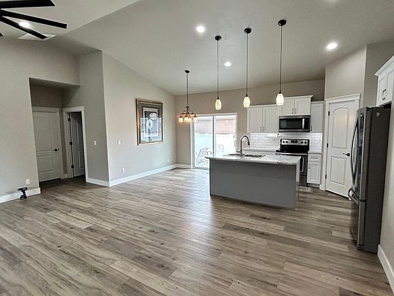 Amazing 1302 square feet single family home includes 3 bedrooms and 2 bathrooms. Newly built in 2020, this home offers modern design, as well as an open concept living space. The two car garage features shelving for additional storage. Backyard includes a patio and is fully fenced. Automatic sprinklers throughout the lawn. Dual vanity in master bathroom. The kitchen comes equipped with refrigerator, range, microwave, dishwasher, and garbage disposal. Hookups available for your laundry needs. Central cooling and forced air, gas heating. Close proximity to the bike/walk path, as well as the center of town. $2,000 monthly rent, and $2,000 security deposit required. Landlord covers water, sewer, and trash services. Background and credit check required. No pets or smoking allowed.