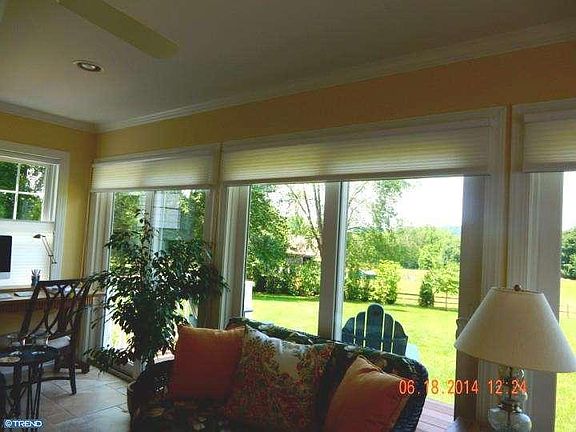 Playful sunroom... Gaze out onto exquisite 10,000 acre vista, Sun-kissed days, Peaceful nights "...here comes the sun.." Honey, I'm home...the softness of the summer air....kisses of the rain.... welcome home to the "No Outlet" Lane; Visit this bright, charming home with 4 year new updates including gourmet, granite kitchen, kitchen-aid appliances,extra large sink,custom, raised paneled, maple 42" cabinets, island, electric cook top, wine rack, custom kitchen sideboard with granite counter,island chandelier, decorative island fluting, First floor hardwood oak floors, newer Sun room - 12x21', newer Mud room with skylights, newer Master Bedroom,spacious, finished basement with 500 square Feet of extra living space, newer septic tank, wainscoting, crown moldings, recessed lighting,reverse osmosis water system, wall to wall berber bedroom carpets, 2 fireplaces,LR built-in bookcase with cabinets, newer replacement windows throughout home, Honeywell thermostat, front door with side lights, cul-de-sac road, Downingtown Schools, close to transportation, restaurants, shopping, Rts. 401, 113, 100, 202,30, 29 and PA Turnpike. NOTE: Public Records errors include square footage, additions done in 2010 including new Master, Sun room and Mudroom.