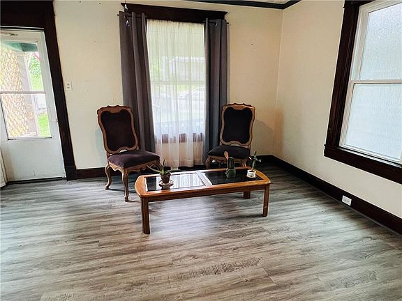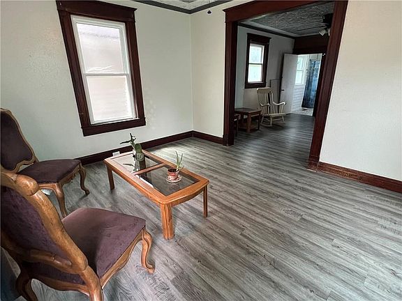 Seller is offering $10,000 credit for plumbing repairs or any buyer desired repairs with acceptable offer. Perfect starter home or to be used for a rental with being freshly renovated 2-bedroom 1 bath with new LVP flooring on main floor, new carpet in the upstairs and new windows throughout. Downstairs windows are textured for privacy the foe tin ceilings bring new life to this home. Kitchen is bright with natural light and has a gas stove but also still hosts the plug for an electric stove. Renovated bathroom has a spacious shower and ceramic tile and also recently painted. Home does have an unfinished basement and there is a brand-new door that opens to the backyard. Off the Kitchen you have a nice small deck for grilling and off-street parking in the back. Who wouldn't want a porch swing to hang out on during the cool summer nights? Home also has recently received a new roof, water heater and newer plumbing.