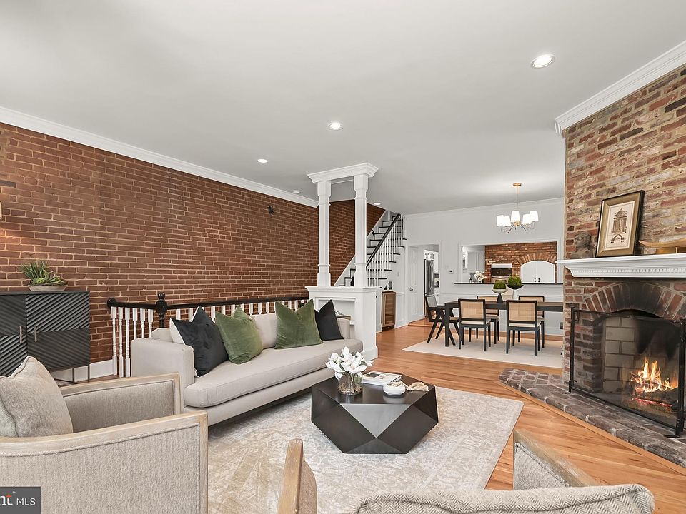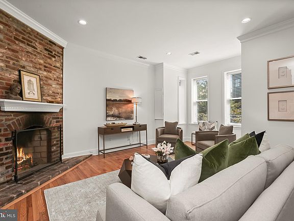 An exceptional opportunity at 925 O Street NW, a stunning end-unit brownstone that seamlessly blends historic charm with modern comfort. This beautifully maintained residence offers two distinct living spaces, including a light-filled two-bedroom rental apartment with its own private entrance—ideal for generating income or hosting long-term guests. The Main Residence: Step inside the main home and find 2 bedrooms plus a den and 2.5 baths, where original architectural details meet thoughtful updates. Exposed brick, graceful archways, and custom built-ins add warmth and sophistication throughout. The spacious living room, anchored by a fireplace, flows effortlessly into the dining area and open kitchen. From here, doors open onto a private deck—perfect for entertaining or enjoying quiet evenings. A stylish powder room completes this level. Upstairs, the primary suite offers a serene retreat with a cozy sitting area and fireplace, a spa-like en-suite bath, and an adjoining den—ideal as a home office or creative space. A second bedroom, full bath, and laundry provide convenience and functionality. The Second Unit: Accessible from Columbia Street, the rental unit features a welcoming living room with fireplace, full kitchen, 2 bedrooms, 1 bath, laundry, and storage. Previously generating up to $2,000 per month in rental income, it’s an investment or a comfortable space for visiting family and friends. Additional features include a private attached garage for one car connects the two residences, a rare luxury for this neighborhood. Nestled in the heart of Shaw, this home offers unmatched access to acclaimed dining, boutique shopping, and vibrant city living, with Metro just steps away. Historic charm, modern updates, income potential, and a prime location—this home truly has it all. **Fireplace flames digitally added for aesthetic, but not representational of working order**