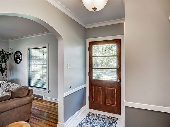 Beautifully nestled in Southwood Park, this home with its historic charm for todays buyer has been well cared for. On a quiet street, the two story is bright and cheery. Enter through the front door and the large entry with tiled floors, leads either to the dining room on the left, the living room on the right, the hall to the rest of the house or the beautiful wood staircase to the upstairs. The living room with all wood floors is larger and can accommodate two sitting areas. The wood burning fireplace is warming in the winter. The dining room is large and can easily hold a hutch. The updated kitchen has lots of counter space and all stainless appliances. There is a breakfast nook or office just off the kitchen. The half bath is down stairs just inside the back door and is nicely updated also. The basement is partially finished with carpeted floors and another fireplace. The unfinished area has lots of storage options and the capability to add a half bath as it is plumbed for a shower and sink already. The laundry is in the basement with a convenient laundry chute. All mechanicals are maintained regularly. Upstairs are three bedrooms. The smallest room is at the top of the stairs but you will be surprised how large it is. There is an updated bath with tiled floors and linen storage. The second bedroom is as large as a master bedroom with walk in closet. The master is also large with his and hers closets. The two car garage shares a driveway with the neighbor next door and the fenced in yard is a nice retreat with patio and boxed in gardens to the back of the garage. This home comes with a security system. There is lots of storage in the attic and the garage. Updates include freshly painted exterior and garage, mostly all painted interior (2nd fl), restored fireplaces to working order, some updated lighting.