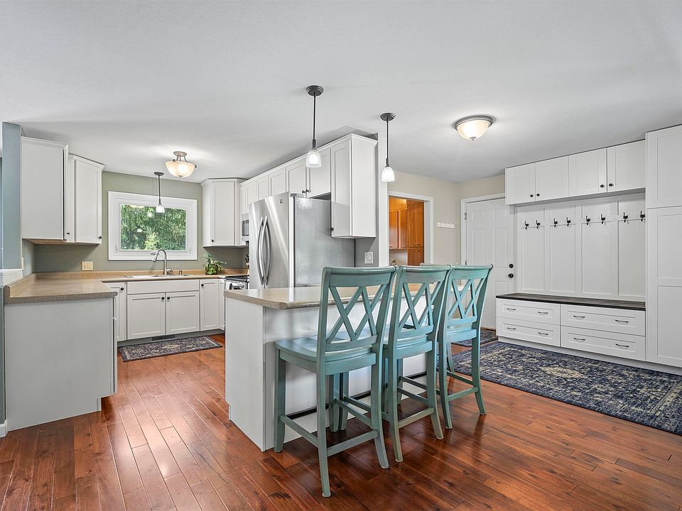 This stunning, entirely updated ranch home, situated on a quiet cul-de-sac, is calling your name! With four main-level bedrooms, a convenient main level laundry room, & a built-in mudroom area for organization, this home offers both space and functionality. The open-concept kitchen flows seamlessly into the dining and living areas, allowing ample entertaining options. Additionally, you'll love the newly renovated main level bathroom and new windows installed throughout the home (2021). The lower level includes a full bath, a spacious family room with cozy fireplace, and a versatile office/non-conforming bedroom. For peace of mind - a sump pump and drain tile system has been installed around basement perimeter - completely dry basement! Elite Home Warranty package included!