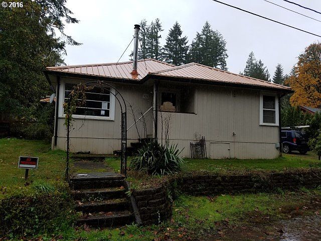 Vernonia Fixer features 2 large bedrooms, hardwood floors throughout. Large level yard with 2 car detached garage, shop. This property is cash only because of condition.