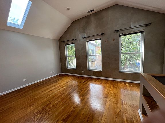 - Oversized 2 bedroom/1 bath apartment coming available with premiere UIC location just off Taylor on Carpenter - steps to dining, parks, East campus, etc. - 2nd Floor/Top Floor Unit - Private entrance with soaring 12 feet ceilings and 4 skylights flood the apartment with natural light - Hardwood flooring throughout; tiled bathroom - Extra wide living room, spacious dining area, breakfast bar, and spacious bedrooms - 2 bedrooms and 1 bath - windows in every room - White kitchen, loaded with cabinets - Stainless steel appliances just a year old (refrigerator, stove/oven, dishwasher, exhaust fan) - Central heat and central AC - Private back porch at rear of apartment - Coin laundry available onsite - Tenant pays gas and electricity - Water and garbage included - No smoking - $200 nonrefundable move-in fee/person / $400 - $45 nonrefundable third-party tenant screening/person - Street parking with Zone 5 parking sticker; dedicated exterior parking available in alley behind building for extra fee - Short-term lease available - Email to arrange showing, and provide the following information: - move-in date - number of occupants - animals, if any - Tenant pays gas and electricity - No smoking - Nonrefundable move-in fee of $400; nonrefundable $40 credit check/person; short-term lease available