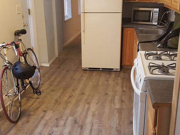 Great location and sunny one bedroom carriage house with private entrance behind larger townhome. Large 2nd floor deck for hanging out and entertaining. 1st floor has a small living room, full kitchen with gas range, washer and dryer. 2nd floor is comprised of a sunny office room perfect for working from home, a fully renovated bathroom and a large bedroom with closet. Hurry, this listing won't last long. Renting requires a 1 year lease. Tenant pays own utilities and 1/3rd of the water bill which generally runs $40 to $50/month.