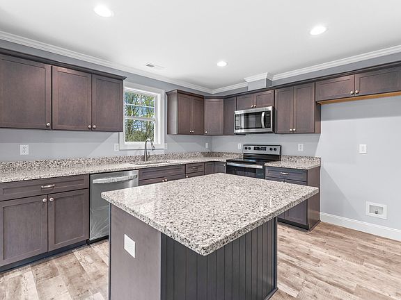 VERY CHARMING, NEW CONSTRUCTION 3 bedroom/2.5 baths in the heart of Louisburg. Spacious family room with lots of windows and light. Kitchen has granite counter tops, large center island, stainless appliances that include range, dishwasher, microwave with an exhaust fan to the outside and farm style sink. DOUBLE PANTRY and plenty of room for dining. Builder added upgraded 7m, stone core LVP flooring for durability and longer wear. Deck and porches have composite flooring (similar to Trex). Super clean SEALED crawl space with spray foam insulation (also used in attic). Very helpful if you want to save on utility costs. Owner's suite is a delightful surprise with its own private terrace. Bath is beautifully tiled with dual vanity, walk-in closet, walk-in shower and water closet. Secondary bedrooms are very spacious. Parking for 2 cars with a turn-around. There's enough room along the left side of the house for a garage to be added. Charming in-town location. You will love this home.