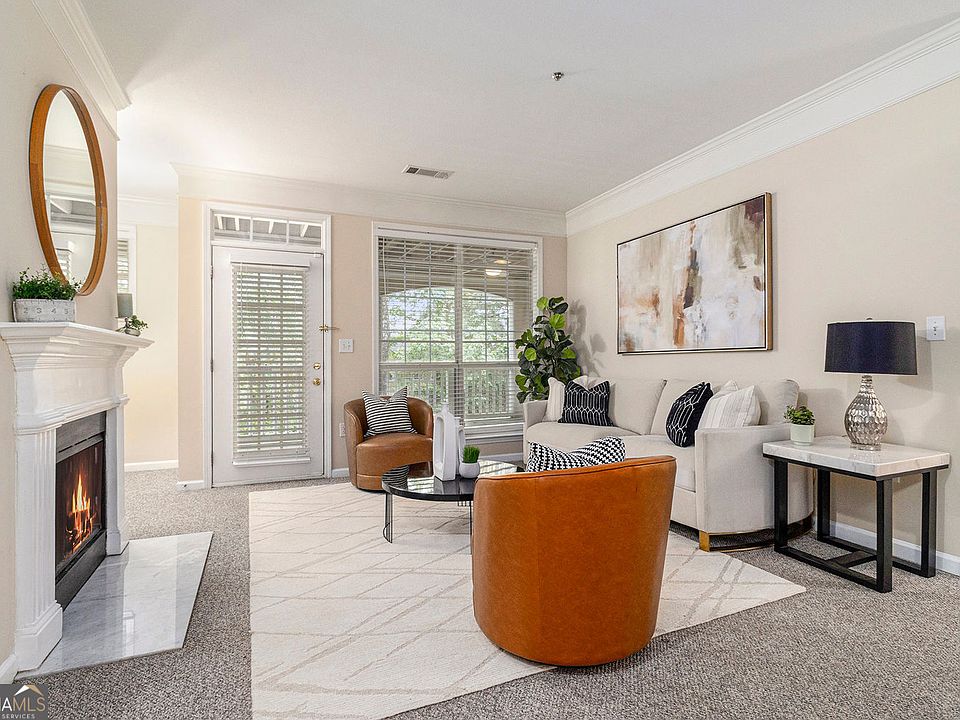 Welcome to The Villages of Devinshire, where comfort meets convenience! This inviting 2-bedroom, 2-bath condo features a desirable roommate layout, offering privacy with bedrooms on opposite sides of the home. Step inside to find a spacious living area with a cozy fireplace, abundant natural light, and access to a large private balcony-perfect for relaxing or entertaining. A small reading nook or office space adds flexibility for working from home or enjoying quiet downtime. Life at The Villages of Devinshire feels like resort-style living. Residents enjoy beautifully landscaped lawns, serene parks with pavilions, a yoga center, a modern fitness facility, and an elite clubhouse designed for gatherings and events. For entertainment, there's even a mini-theatre, while outdoor recreation is elevated with a temperature-controlled swimming pool, a dedicated kids' pool, playground, picnic area, and scenic walking trails. Pet owners will love the convenient dog park, and there's even a car wash station to make everyday living easier. Located in Alpharetta, this condo offers affordable living in one of North Fulton's most desirable areas, with easy access to top-rated schools, shopping, dining, and commuting routes. Don't miss the chance to enjoy a vibrant lifestyle at The Villages of Devinshire-schedule your showing today!