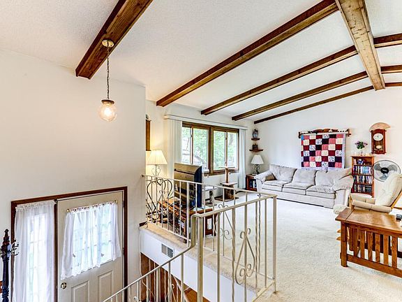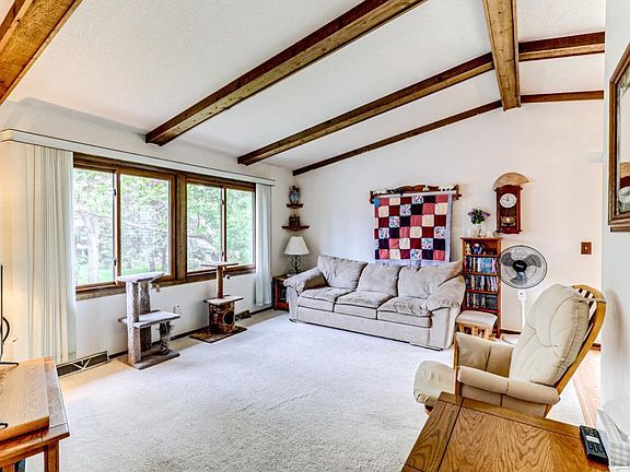 Beautiful neighborhood with a peaceful setting in Mounds View school district. Large master bedroom with vanity and walk-thru to main bath. Wood beamed ceilings; new furnace and air replaced in April. New deck, landscaping and concrete steps. Near by walking paths to McCullough park. You don't want to miss this one!
