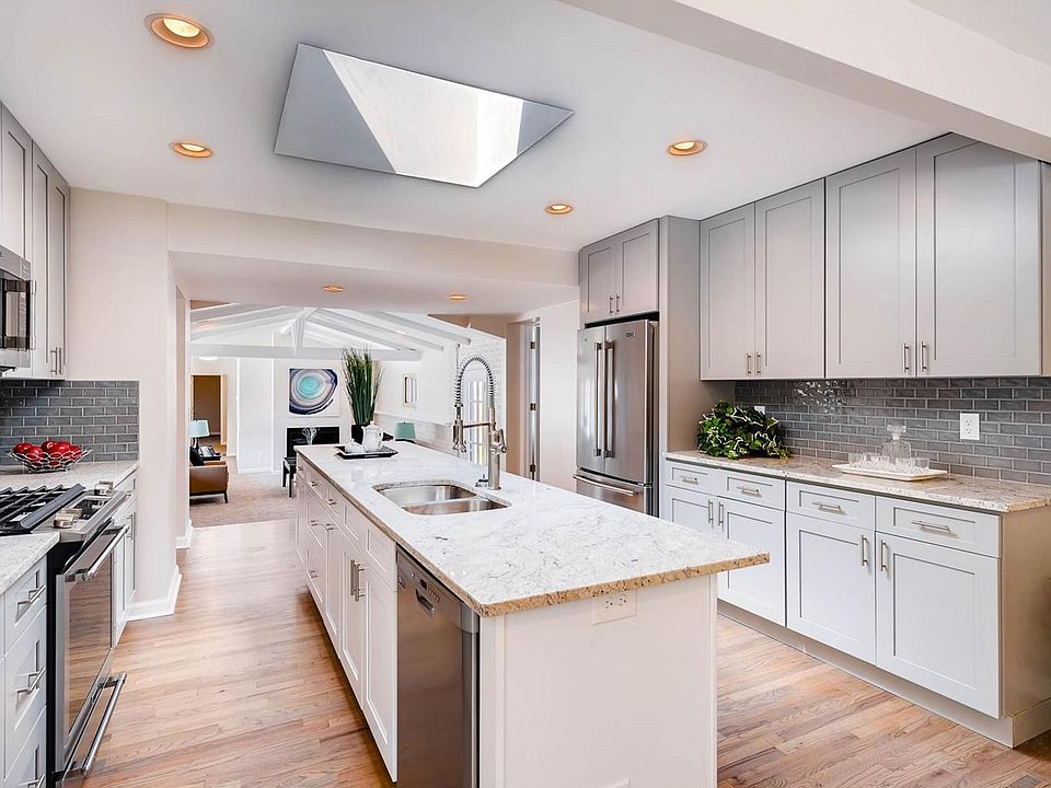 - Eating Space / Kitchen, Open Floor Plan, Kitchen Island, Master Bath, Master Suite, Updated, Remodeled, Sump Pump