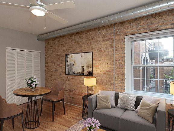 Reminiscent of three classic 1920's row houses joined together, this recently rehabbed vintage building is one of the more charming residences in Lakeview. The craftsmanship of its exterior is reflected in each rental home, a bright loft-style space with hardwood floors and exposed brick, duct work and pipes.