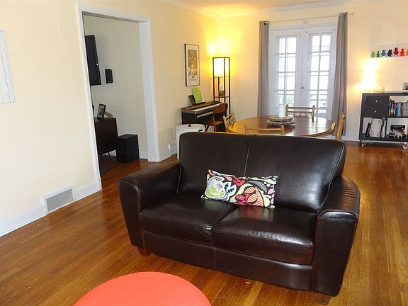 Charming bungalow on Charming Euclid Ave! This 2 BR home has a great layout staring with the bright airy kitchen with breakfast bar, Corian countertops in neutral charcoal color, adorable breakfast nook with Range & Refrigerator remaining. The formal dining room has built in corner cabinets, beautiful and spacious Living Room with crown molding and French doors onto the screened in porch. The bedrooms are both large with nice sized closets and the bathroom has a new vanity and additional closet for storage. This home has great storage space in the full unfinished basement and a jaw dropping walk up attic with approximately 650 sq. ft. that could be converted into living space. The home has vinyl replacement windows, newer vinyl flooring in kitchen and bathroom and a new privacy fence for the back yard. The 2 car garage is easily accessible from the alley. Move in ready!