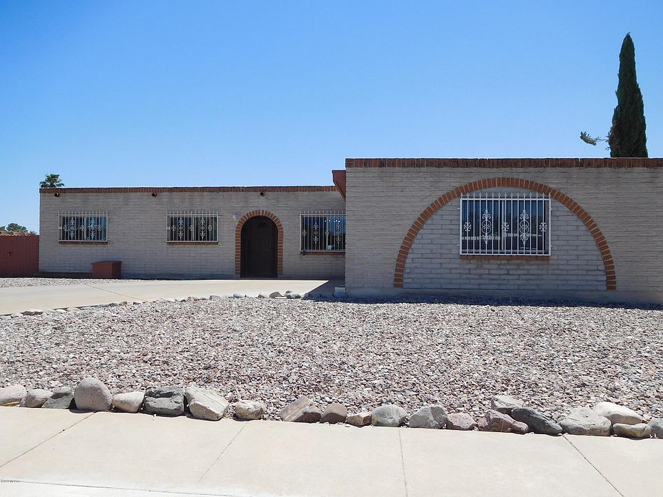 Beautiful, clean, spacious brick home with full length covered back porch. Large great room with dining area next to foyer. Roomy office space opens into living area and can be closed off with pocket doors. Great Arizona room complements living areas. Remodeled kitchen with stainless steel appliances that stay - washer & dryer stay too. Three bed/two full baths. Floors are tile and wood laminate. Two car garage, large workshop in private block fenced-in back yard. Patio outside the covered full length back porch makes yard work easy! No HOA. Quiet neighborhood close to Golf Links near Harrison. North/ South exposure with front facing the Catalina Mountains. Move in Ready!USDA zero% down loans available in this zip code area!