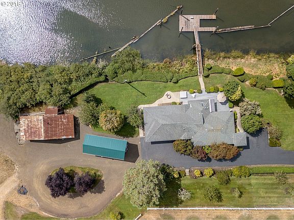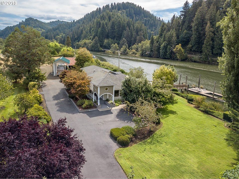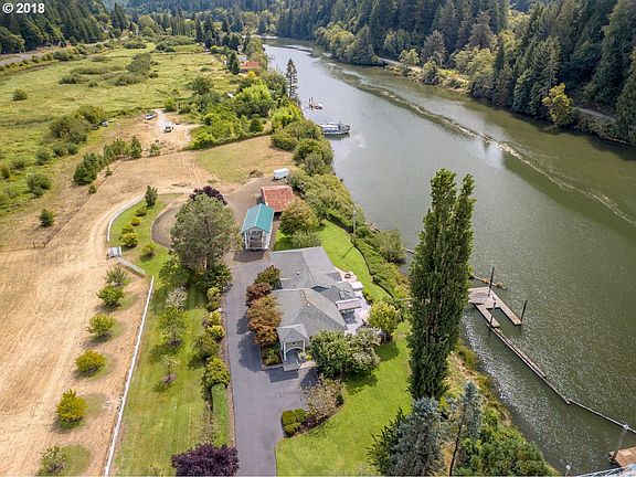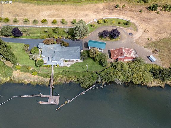 Riverfront ranch with 557.85' deep water frontage; private registered dock. Home remodeled in 2002 including roof, Hardiplank siding. Living room, kitchen & master bedroom wall of windows to enjoy the spectacular views. Expansive Trex decking with awning; hot tub. 20 fruit trees irrigated with spring. Triple carport, barn, RV full hookups