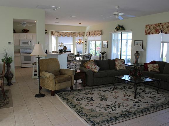 Madeira Model you wont want to miss attractive and impeccably maintained withopen plan, 2 car garage with extra conditioned office. Large lanai with solarium windows show the beautiful outdoor grounds. Attractive irrigated landscape to enjoy Florida living Enjoy amenities of Spruce Creek Community; pools, clubhouse, golf course, restaurants, to numerous to list.