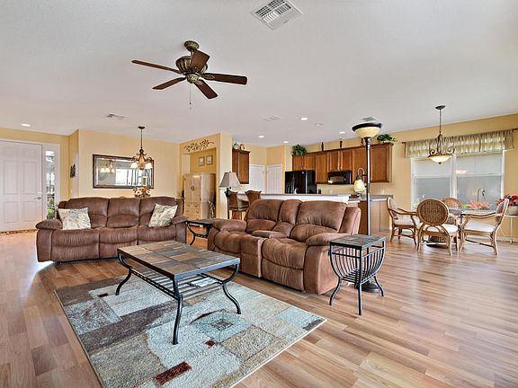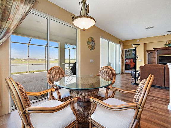 Sheridan 3/2/2 with unbelievable lake views with fountain! This home has some of the best views in Stone Creek and the extended screen enclosure make it the perfect place to entertain or sit and enjoy the view and sunsets! The home boasts new AC 2017, new floors, water softener, tinted windows for economics of utilities, garage attic additional insulation, door and lights, patio shades, garage electric screen door. The list continues but the real discussion needs to be the view. This has been a seasonal home so very lightly lived in and extremely well maintained, it is better than new! Take a good look as you will be hard pressed to find these views and all these upgrades with immediate occupancy. Call for a private showing.