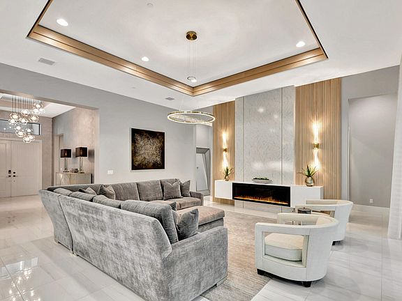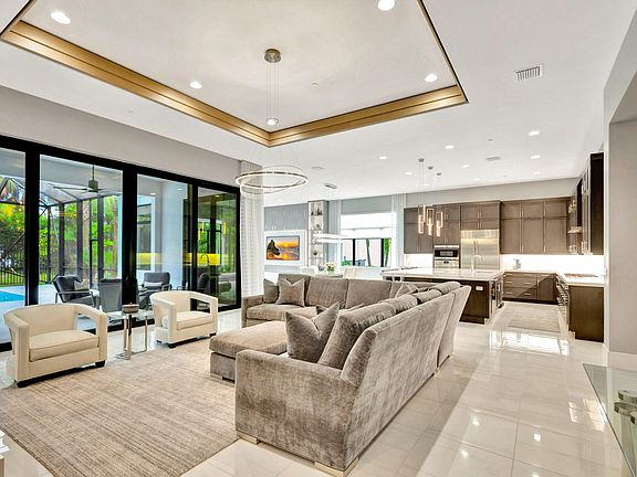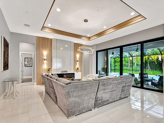 Experience the epitome of modern living in this architecturally stunning home, nestled in a premium location in the community with private tropical views, offering nearly 4,000 sq ft of luxurious living space. Designed for modern comfort, featuring 3 bedrooms, 3.5 baths, den plus 3-car garage. This meticulously property boasts exceptional curb appeal and a resort-like atmosphere, creating a private and serene retreat. This move-in ready home with an abundance of Natural light and spacious interior design offers a tranquil lifestyle. A grand double-height entry leads to the elegant great room, defined by two sets of large impact glass sliders that frame breathtaking views. The open layout seamlessly connects living spaces, showcasing a chic fireplace, elegant wood treatments, and magnificent light fixtures. The family room boasts built-ins with clean lines and beautiful flowing window treatments. The sleek designer kitchen is anchored by a stunning upgraded quartz island, featuring top-of-the-line Wolf, Subzero, and Cove appliances, convenient pull-out drawers, ice maker and a large walk-in pantry. The majestic primary suite serves as a serene haven, complete with a spa-like bath and dual custom closets, dual sinks, special side cabinets, a luxurious walk-in shower and soaking tub. Step outside to your private paradise, featuring a large loggia, oversized pool, water features, and protective screened patio perfect for relaxation and entertaining. Unwind poolside in your very own Private tropical oasis. The two VIP guest suites are thoughtfully situated for privacy, and the stylish den offers ample space for work or relaxation. An upgraded laundry room provides plenty of storage, adding to the home's functionality. Upgrades throughout include, premium designer built ins in the Living room and Family room, upgraded 2 1/2 Quartz counter tops in the kitchen, master and laundry room, built in custom contemporary fireplace, custom pantry, custom closets, custom window treatments, chic lighting, ceiling fans, a generator, water filtration system, premium solid doors and much more. The Avenir Clubhouse offers luxurious, resort-style amenities set in a pristine, eco-friendly environment surrounded by natural preserves. This exceptional lifestyle includes access to a residents-only clubhouse, tropical pool with lush landscaping, kids' splash pad and playground , state-of-the-art fitness center, tennis and pickleball courts, scenic walking trails, children's room, social events and much more. Just minutes away from several championship golf courses. Residents will enjoy the benefits of the Avenir Town Center, featuring retail shops, dining options, educational facilities and so much more on the horizon. Embrace a vibrant lifestyle in a community that spans 4,500 acres, offering unparalleled living. Conveniently located near Sand Hill Crane Golf Club's 18-hole championship course, the new Nest Par 3 Course, PGA National's Estate Course (with membership options), and minutes away from the airport and Palm Beach