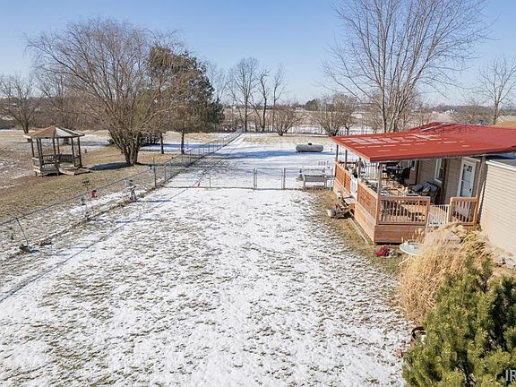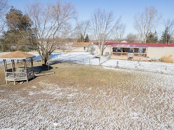 This property features a charming mobile home situated on 5 acres of land, offering plenty of space for outdoor activities. The 2 bedroom, 2 bath home is well-maintained, with added rooms for additional living spaces. The property boasts a scenic pond, with a Gazebo, perfect for relaxation or wildlife watching, adding to the natural beauty of the setting. Full privacy and chain linked fenced in area around home. Metal Roof 2 years old