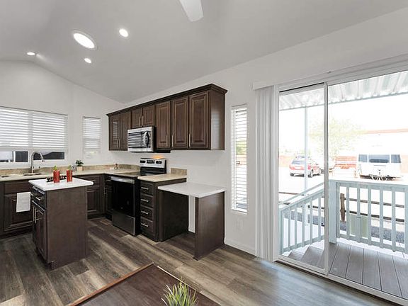 This charming Park Model home at Mesa Sunset RV Resort in Mesa, AZ offers a cozy retreat for individuals or couples looking for a comfortable and stylish living space. Built in 2023 by Cavco, this home features 1 bedroom, 1 bathroom, a spacious living room, a fully-equipped kitchen, and an inviting Arizona room. The home boasts modern amenities such as stainless steel appliances, central A/C, and a corner lot location offering great views and additional privacy.Mesa Sunset RV Resort is a vibrant community with a range of amenities and activities for residents to enjoy. The resort features a clubhouse with social events and gatherings, a swimming pool for cooling off in the Arizona heat, and beautifully landscaped grounds for leisurely walks. Residents can also take advantage of the resort's proximity to nearby attractions such as golf courses, shopping centers, and restaurants, making it an ideal location for both relaxation and entertainment.