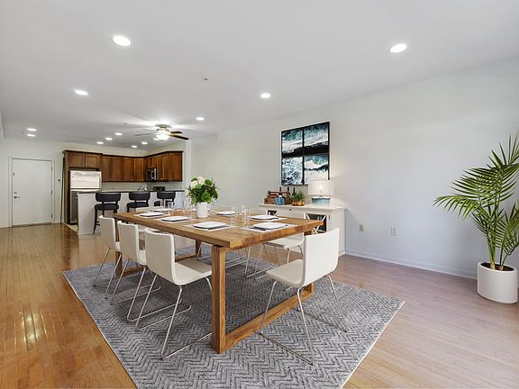 Available for rent! This stunning 2-bedroom, 2-bathroom unit offers 1,400 sqft of contemporary living space with beautiful hardwood floors throughout. The open-concept layout features a large living and dining area. The kitchen boasts stainless steel appliances, granite countertops, and ample storage space. The main bedroom is generously sized and includes a en-suite bathroom and a walk-in closet. The second bedroom is larger than typical, providing extra space and comfort, with a full bathroom conveniently located just across the hall and washer/dryer just adjacent. One parking space is included. The location is optimal for commuters, just minutes from public transportation to NYC, and close to shopping, dining, and the beautiful James J. Braddock Park. The park features an impressive range of sports fields, tennis and basketball courts, playgrounds, and peaceful, scenic areas perfect for relaxing in nature. Contact today to schedule a private tour! **IMAGES VIRTUALLY STAGED**