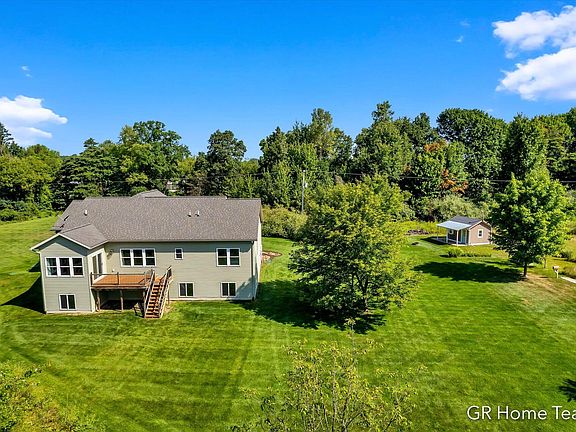 OFFER DEADLINE SUNDAY 8/18 a 3PM. OCCUPIED HOME. DO NOT ENTER PROPERTY WITHOUT AGENT AND APPT. 3.26 gorgeous acres in Ada 10 min from Knapp Corners. Unmatched quality and energy efficiency by Heartland Builders. Thoughtful floorplan and details incl 9 ft ceilings on main and lower level, extra long and tall 3 stall garage, huge laundry plus mudroom plus walk-in pantry spaces. Custom details like tile shower with dual showerheads, tile floors and backsplashes, granite in kitchen and baths, tray ceilings, wood shelving in pantry and closets, and beautiful trim and cabinets. Main floor living with 3 bedrooms, 2.5 baths. Ready to finish lower level is framed for up to 2 additional bedrooms, a workout room, rec room, storage, future bath and wet bar. Seller welcomes agents and their buyers.
