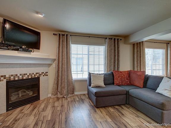 Beautiful townhome style condo in the popular Jewel Lake neighborhood! Located in a small association surrounded by mature trees, this home is perfectly tucked away from the traffic, yet has fast access to everything!Remodeled in 2013, enjoy fantastic updates throughout. Walk in to open concept living on the main floor. An end unit, there are plenty of windows which allow for natural light and the feeling of extended space throughout Alaska's seasons. The bright atmosphere coupled with gorgeous laminates and fireplace make the living room cozy in the winter and the perfect place to relax and entertain in the summer. The kitchen features granite with stainless appliances purchased less than three years ago. The bar area is the perfect place for friends and family to sit and talk while dinner is prepared. The dining space sits between the living room and kitchen which allows for fantastic flexibility and excellent flow. Just outside the kitchen and dining room areas, enjoy the private deck and patio which are ideal for BBQs and enjoying the long summer days. Upstairs, spread out into three large bedrooms all boasting abundant natural light and treed views. The master features a deep walk in closet and en suite. Don't forget the two car garage! As a bonus, there is plenty of extra parking with room for two cars in front of the garage PLUS visitor parking located directly across from the home! This HOA has only 8 units, so it feels more like a neighborhood than a standard association. Beautifully maintained, you have the opportunity to come home and relax rather than tending to endless yardwork. The HOA takes care of exterior maintenance, grounds maintenance and snow removal which means no more mowing your lawn or shoveling your driveway! Driveways and parking areas were repaved last summer.