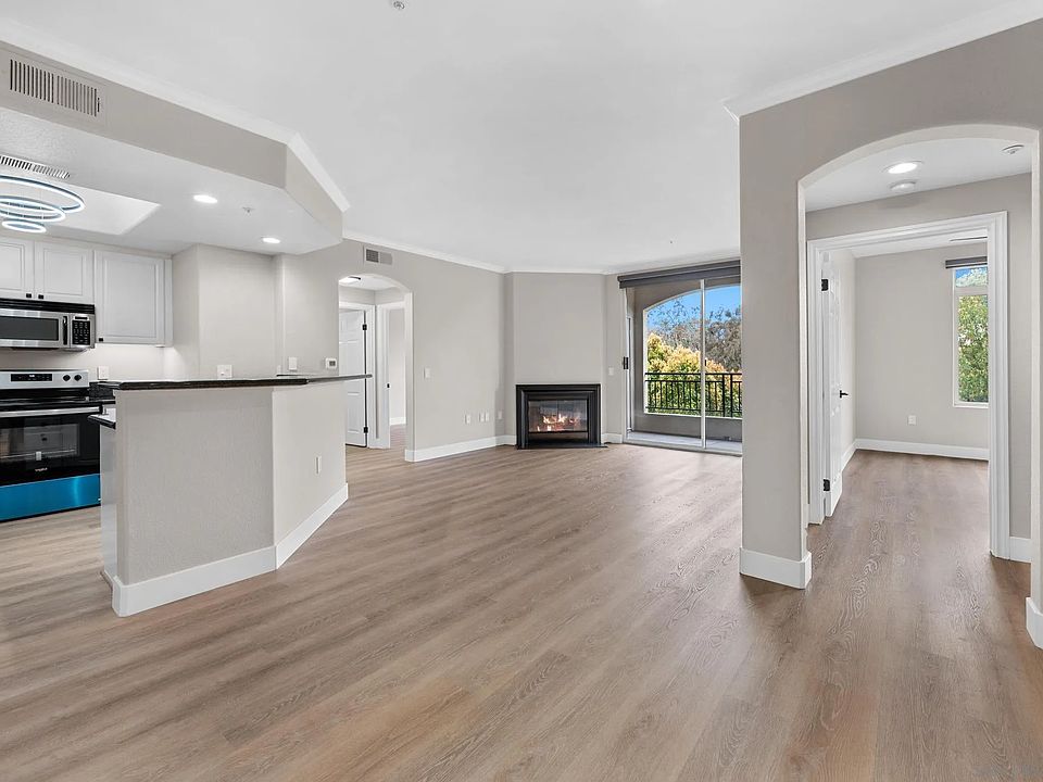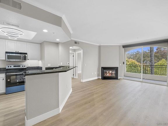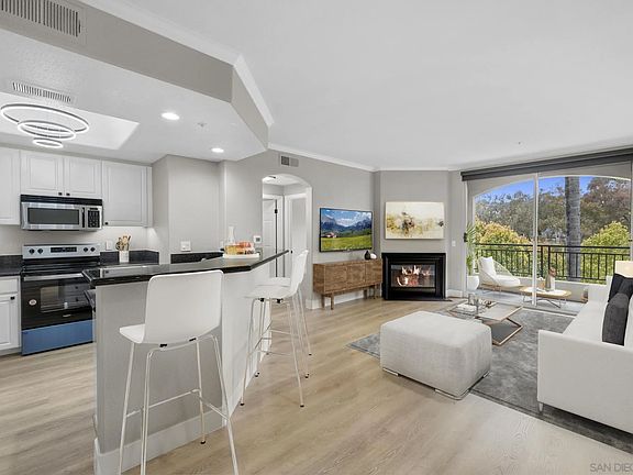 BEAUTIFUL REMODELED end unit 2 bed, 2 bath available in the highly desirable Regents La Jolla. If you are looking for resort living - look no further! This 3rd floor condo has an open floor plan with 2 primary suites. One of the few UTC complexes with 92037 La Jolla zip code! Brand new Luxury Vinyl Planks with 5.5" baseboards throughout! The gourmet open concept kitchen has been updated. Kitchen cabinets have all been refinished in a gloss lacquer white with black knobs. All appliances have been upgraded to Whirlpool stainless-steel. Brand new stove! Brand new AC unit! In unit upgraded washer/dryer. Beautiful black granite throughout the kitchen and bathrooms. All hardware has been updated to black; Door handles, door hinges, light fixtures, and ceiling fans are all brand new. All doors have been sprayed with a fresh coat of semi-gloss. This beautiful condo is also equipped with new motorized black out shades in the bedrooms and a motorized light filtering shade for the patio door in the living room. Both bathrooms have LED, backlit mirrors. Brand new paint throughout. Both closets have custom built in shelves. This condo also provides a private patio with storage as well as a black painted fireplace. Complex is fully GATED with RESORT like many amenities to list! Two parking spaces in gated garage. Movie theatre room, gym, yoga room, pool cabanas, biweekly cooking classes and a lot more! Convenient location close to UCSD, UTC mall, La Jolla Country day, the JCC, shopping, restaurants, the tramway, and bus stops. EASY freeway access to the 5, 805, and 52. Too much to list!