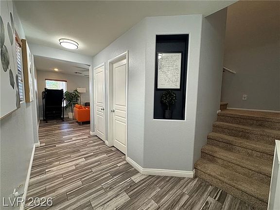 Beautiful Partially Furnished 3 Bedroom Home w/Pool In Mountains Edge! * This Lovely Property Features Cool Sparkling Pool In Backyard Flooring Fully Paved w/ Covered Patio Overlooking Pool Perfect For Entertaining!! * Home Feature Upgraded Flooring Throughout, Ceiling Fans In Every Room ** Kitchen Has All Upgraded Stainless Steel Appliances, Granite Countertops, Pantry & Plenty Cabinet Space ** Primary Bedroom Upstairs w/ Walk In Closet , Ensuite bathroom w/Tub & Shower Combo ** Don't Miss This One!