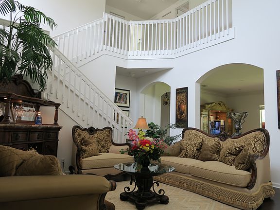 You will fall in love when entering this stunning open floor plan boasting 2 story ceilings & gorgeous lake views from almost every room! Large lot w plenty of room for a pool! Master suite upstairs w sitting room & amazing custom closet, jetted bathtub & separate dual head shower, 3 additional bedrooms upstairs & 1 bedroom downstairs! Upgraded kitchen w high grade granite counters & ss appliances, crown molding in almost all rooms/living areas, separate laundry room w largest Samsung washer & dryer available! Both stories/floors built concrete block. Man gated community & amenities to incl clubhouse, pool, fitness center, tennis courts, etc. Excellent ''A'' rated schools! Main entrance off Lyons 1 mile from turnpike & 2nd residence entrance off of 441 minutes from Wellington Mall!
