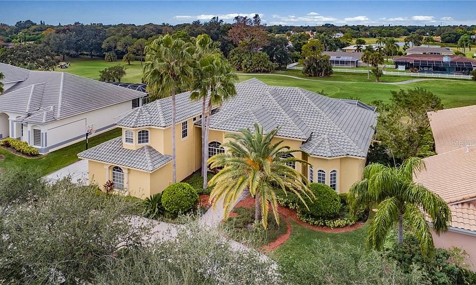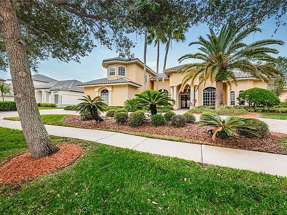 AN EXCEPTIONAL AND ELEGANT FIVE BEDROOM, 5 BATH, 5500 TOTAL SQFT EXECUTIVE HOME LOCATED ON THE 12TH FAIRWAY IN ONE OF TAMPA BAY'S FINEST PRIVATE GOLF COMMUNITIES! Beyond an impressive brick paver drive and a majestic, towering covered entry, you'll discover a gorgeous home with picturesque golf course views, 14ft-high ceilings, fine window & ceiling treatments and exceptional woodworking throughout. Graceful foyer is complemented by a wonderful formal dining area to an exquisite pool-side sitting room with fine coffered ceilings. The distinguished executive office features rich wood flooring and a luxury wetbar & cabinetry. The large chef's kitchen boasts gas cooking, ss appliances, Corian counters, posh raised-panel cabinetry, a breakfast bar, a center island, a work center and spacious casual dining overlooking the golf course. The huge family room offers extensive built-in, a gas fireplace and entertainment center. Generous master suite provides striking distressed wood floors, a pool-side sitting area, splendid his & her walk-in closets. Your superb master bath includes beautiful counters & cabinetry, a jetted Jacuzzi spa & a multi-head walk-in shower. Bedrooms are oversized and bathrooms are all well-appointed. Out back you'll find a grand 56ft-wide screen-enclosed pool deck with 180-degree views of the golf course. Wide pool, elevated hot tub with waterfall and 375sqft covered lanai are perfect for entertaining. Numerous features and amenities. An outstanding value!.