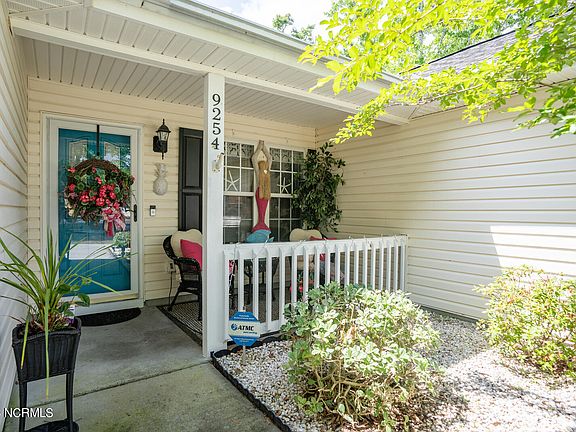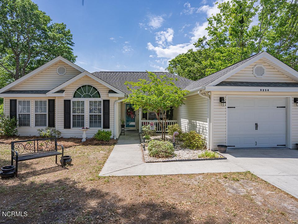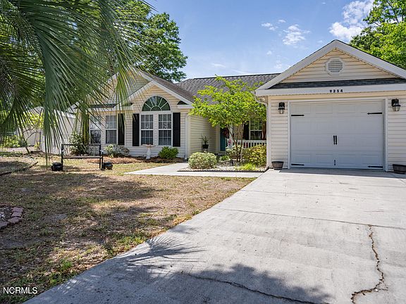 Come on over and enjoy the Calabash lifestyle on your own shaded covered front porch of this adorable 3 bedroom, 2 bath home in the Landing II subdivision. This well-laid-out home is situated on a cul-de-sac just minutes to beaches and world-famous Calabash seafood. There is a 1 car garage plus an extra parking pad and no HOA to restrict boat or RV parking. As you enter the home, you will notice the solid surface flooring that runs through the home, a vaulted ceiling, and a cozy propane fireplace in the main living area. The kitchen offers new counters, a dishwasher, fixtures, a backsplash, a cozy breakfast bar, a pantry, a laundry closet, and easy access to the garage. The primary suite offers a tray ceiling and the en suite is updated with a gorgeous tile floor and custom enlarged shower. The 2 additional bedrooms and a guest bath plus an additional sunroom offer additional living space. The seller has added touches to the French doors with shelving built over them for showcasing books or treasures. There is even an additional exit to the backyard. Dining can be enjoyed in the ample space adjacent to the kitchen or with a step out the slider door to an oversized screen porch. A ceiling fan and drapes are all included. Easy access via doors to the deck or to the patio which has been added to the fenced backyard. Storage options include the shed or garage complete with shelving, a workbench, and pull-down stairs to the partially floored attic. The HVAC was replaced and now offers a heat pump plus a propane gas pack for the few chilly days in southeastern NC. There are also new light and bath fixtures. The seller is leaving a window air unit for the dining room which could come in handy for busy chefs in the kitchen. Also includes a $2500 buyer use as they choose allowance, The community offers the nearby golden sands of Sunset Beach, a plethora of local golfing, and minutes away just over the state line to bustling Myrtle Beach with Wilmington, NC just an hour north
