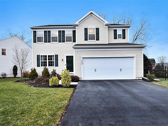 Beautiful 4/5 bedroom colonial in highly desirable Whispering Farms community. This Parkland stunner is situated on a cul de sac and offers a private back yard with tiered deck and large fenced area off to the side. Foyer opens up to a den/office (could be formal dining room) and leads to spacious family room with corner fireplace. The eat-in kitchen features a center island, gorgeous cabinets, stainless appliances and an oversized pantry. The second level boasts a loft area (can easily be converted to a 5th bedroom) and four other nicely sized bedrooms. The Master Suite offers a private bath with walk-in closet, tile floors and double vanity. Bonuses are economical gas heat and new roof and siding. Enjoy the countryside while being minutes to highways and shopping.