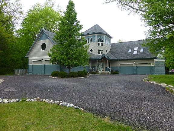 UNIQUE ARCHITECTURAL MASTER PIECE! Designed by proud owners, now it can be yours. Custom blend of contemporary and historic styles, very open floor plan with dramatic views. Large bedrooms, in-law quarters, cathedral ceilings, a private tower study-room for everyone, and every lifestyle. 5 acre lot, heavily wooded, with walking trail. 2.2 car attached garage. Please refer to detail sheet, too many here to list. Pride of ownership shows in every corner of this home, inside and out.