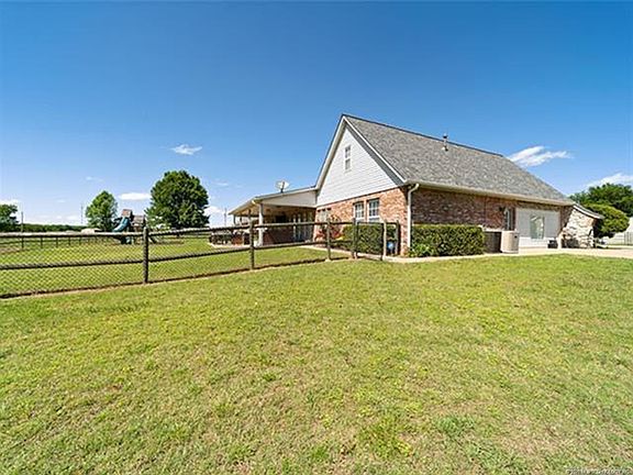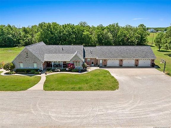 4 bedroom home, 2 living areas, & huge master suite. Wide doors and hallways. Newer wood style and tile flooring. Large windows through out. Property sits on 5.79 beautiful acres in Claremore school district. 3 LARGE attached garages, storm shelter in the garage. Outside features a shop building, animal pole barn with paddocks surrounded by pipe fencing. Bring your animals! New roof in 2019! House is wired for generator back up!
