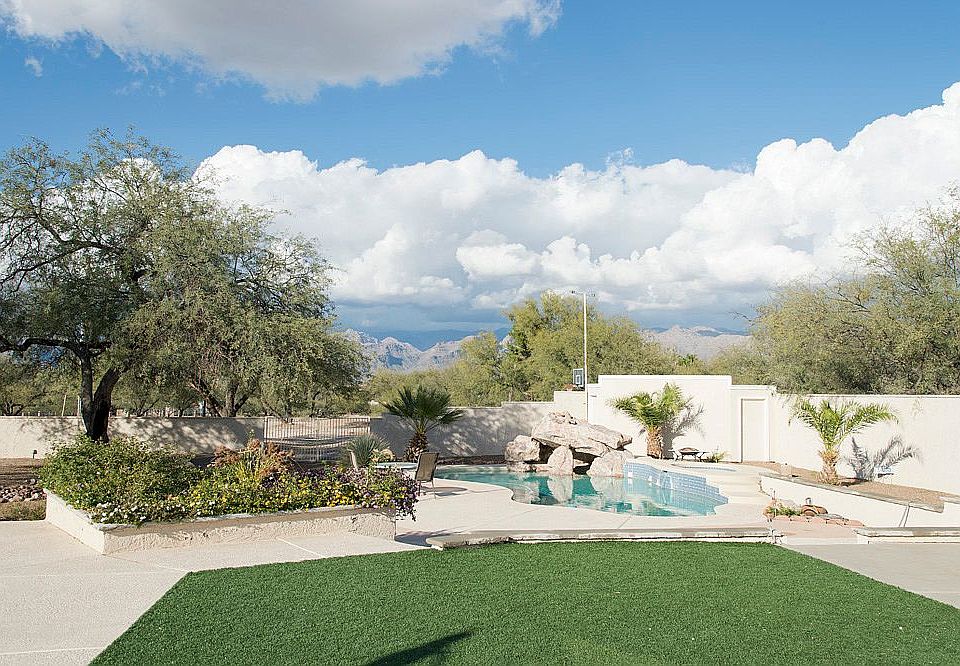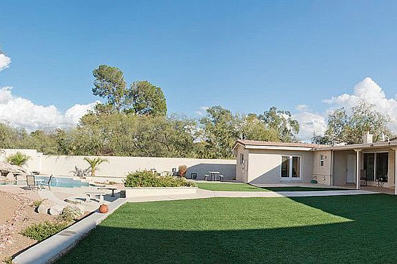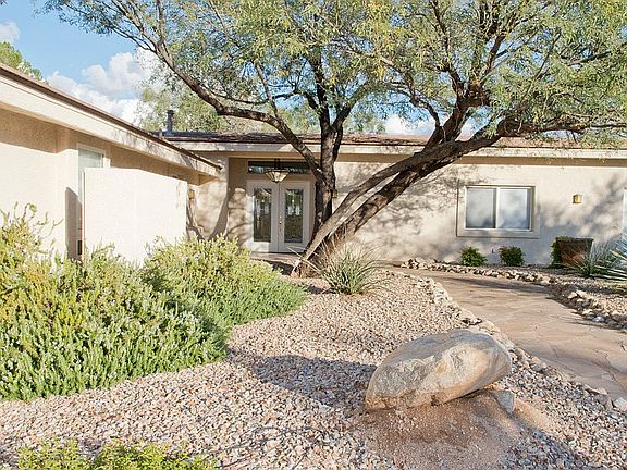 Unique home located in northeast Tucson in a very desirable neighborhood. Urban feel while still living in the city. Perfect home for entertaining. Breath taking views of the Catalina's. North facing windows allow for the eye catching beauty of the snow capped mountains in the winter to the monsoon lighting shows of summer. Home backs to your own private walking and horse riding trails in a desert setting with equestrian easement to Tanque Verde Creek. Plenty of room to roam on 3.3 acres with over 30 mature mesquite trees, huge sand volleyball court, pristine pool with adjoining jacuzzi and rock water feature, covered RV storage with hook-ups, 2 outbuildings and basketball court. This 4200 sq ft home has 5 bedrooms( Mastersuite is large and exclusive) and 4 bathrooms with one of the bathrooms having access directly to expansive covered patio to pool plus dual outside showers, dream kitchen with large pantry, gorgeous granite counters, travertine floors, extra large office or den, entertainment quarters with pool table and Two 4 car garages with bathroom featuring an additional 4800 sq ft. Neighborhood Description Northeast tucson, desirable location, breathtaking mountain views, great vegetation.