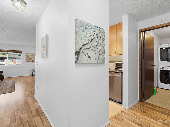 Welcome to this spacious 2 beds / 1.75 bath condo in the Vibrant community of Greenwood. Incredible location! Only 3 blocks from Sandel Park for play & dog walking. Just a quick stroll to all the coffee shops, bars, & restaurants on Greenwood Ave. An ideal location for a walkable & fun neighborhood, and easy access to downtown Seattle. Coveted top floor, corner unit! Features a primary bedroom with primary bath. Enjoy the grand laundry room with a full-size washer/dryer plus additional storage space. The balcony is perfect for taking in a sunny Seattle day. Includes a secure building entrance and an elevator. Unit has laminate floors & newer paint. The exterior was recently refreshed. No rental cap! Pet Friendly. Includes dedicated parking.