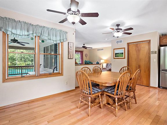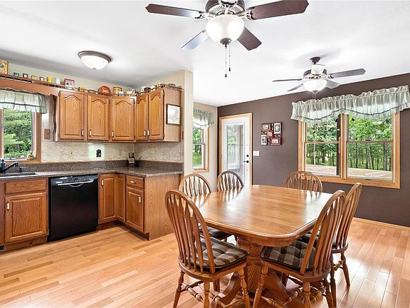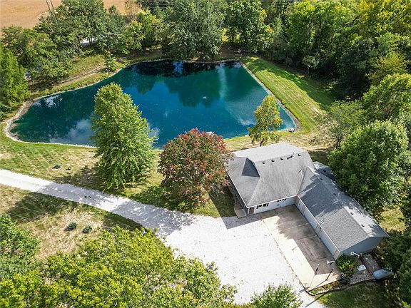 17.17 ACRES-Country living with all the fun stuff - Hunting, Fishing, Wooded, Rolling Hills, Big Barn. Custom Built Home with 2 bedrooms on mail level & 3rd non-conforming Bedroom in lower. Gorgeous stocked pond professionally maintained. When your not fishing you can enjoy the beautiful water view & wildlife from the wrap-around covered, composite porch w/ ceiling fans. The main level of the home offers large kitchen w/ stainless & black appliances, granite counter tops & pantry. Eat-in Kitchen, Living Room, Primary Suite w/ walk-in closet & 3/4 bath, 2nd Bedroom, 3/4 bath & laundry. Walk-out lower level includes 3rd non-conforming Bedroom w/ enormous closet & built-in book shelves, Full Bath, Family Room, Tuck-Under 3rd Garage w/ additional wood fed furnace. Tankless Water Heater, Whole House Generator, Water Softener, 2 car attached garage, Behind barn large walk-in game cooler & shed. Barn is a hunter or hobbyist's delight! Some land in the Forestry Program. Summer & Fall Photos