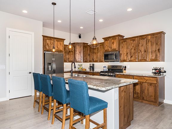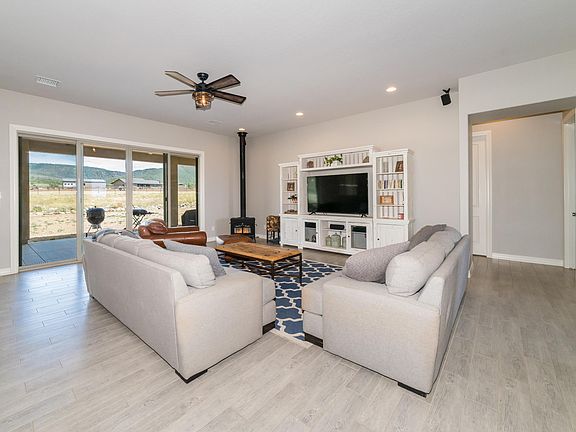 Contemporary and industrial touches in this amazingly spacious single level ranch-style home with a 4-car garage set on acreage in Legend Hills. Quite literally nothing was forgotten in the designing of this 2520 square foot home where the living space encompasses 3 bedrooms, 21/2 bathrooms, a home office plus a den/flex space, great room, kitchen, and an incredible laundry room. The great room and kitchen were designed on a grand scale to create a wonderful, central gathering space. Dark Knotty-Alder cabinets and wood-look tile floors run throughout the home with carpeting in just the bedrooms. Ceiling height is 10 foot with 8-foot doors. The yard contains 3-1500 square foot fenced pens for gardens, dogs or whatever your hobby may be, 50-amp RV hookups and is plumbed for a clean out.