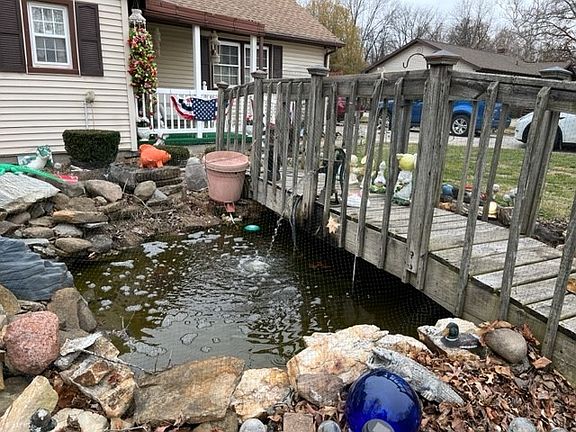 Something for everyone! This spacious 2-bedroom home has a lot to offer! Starting with an inviting front porch that’s perfect for enjoying your morning cup of coffee while taking in the sights & sounds of the front yard koi-pond; beautiful hardwood flooring in the kitchen, dining and laundry areas; 40’ of kitchen cabinets with pull outs & a total appliance package; an updated bath with a double vanity; a floored attic with access in the laundry area; plus a really nice fenced in backyard that includes a deck with a gazebo, a finished garden shed that could be used for an office or a cute craft room with a window air unit and small heater; a large area for a garden & a handy clothes line. And the finishing touch! A 36’ x 24’6 unattached insulated garage that’s perfect for working on all your projects or for storing all your toys with plenty of cabinets & storage, large enough to park 4 cars with 2 overhead doors!