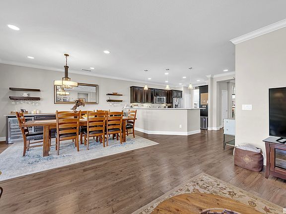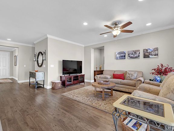 This charming single-story home, located in the desirable Sierra Canyon of Somersett 55+ community, offers 3 bedrooms and 2 bathrooms with a host of updates throughout. The property boasts beautiful crown molding, elegant quartz countertops, and LVP flooring, providing a modern and stylish atmosphere. A dry bar adds a touch of sophistication, perfect for entertaining. The home is light and bright, with stunning views visible from both the courtyard in front and the cozy sitting area inside., With its updated features and inviting ambiance, this home is a must-see. Kitchen has all updated soft close cabinets and lots of pull-out drawers for ease of storage and use.