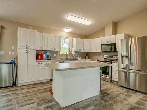 You won't want to miss this wonderful, well-loved home that has many updates inside and out! AND it is ZONED FOR HORSES with lots of room to build a barn and/or large shop! Numerous updates in the past year include freshly painted interior walls, new laminate flooring on the main floor, and most light and plumbing fixtures! The numerous exterior updates include steel siding (2017), shingles (2015), & concrete curbing & rock (2018)! The main floor offers a 3/4 bath off of the garage and a great open floor plan topped with vaulted ceilings. The kitchen has great cabinetry for storage, center island, and most appliances were updated in the past few years! The upper level offers the hard-to-find 3 bedrooms on one level, PLUS the laundry! The master bedroom has double closets, one of which is a huge walk-in. The updated full bath has new tile floors, paint, new fixtures, a whirlpool tub and 4' walk-in shower! Step down to the 3rd level and enjoy the huge family room with recessed lighting and gas fireplace - plus office area! There is a 4th bedroom and large unfinished area which is plumbed for a future 3rd bathroom. The mechanical room offers a lot of storage and the energy-efficient furnace runs either on propane or plenum off-peak heat (propane tank leased through Rud Oil). The energy-efficient hybrid water heater was new in 2011. This great home has surround sound speakers and wiring throughout and is ready for you to hook up to your sound system. Oh yes - don't forget the garage! The oversized 3-stall garage has floor drain and a separate workshop area finished in the front that is heated and cooled via the home's forced air system and has 2-220 outlets (don't need a workshop? Take out the wall and expand the garage parking!). Call a Realtor to take a look today!