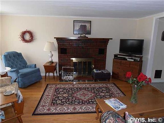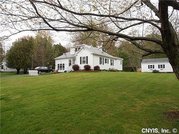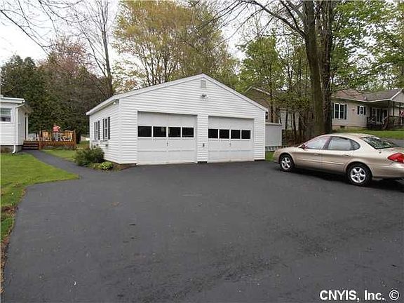 Incredible value here with 3 garages, 4/5 bedrooms, 2.5 baths, hardwood floors, fireplace & all in beautiful condition. First floor master suite, laundry hookups in garage & basement, large white eat-in kitchen, formal dining room & finished second floor that was once used as an in-law apartment. Finished attic area that could actually be an additional room. Attached one car garage, detached two car garage & a large basement for storage galore. Just a short walk to Oneida Shores Park & two minutes to Route 81. New roof,siding & windows. Charming home with lots of custom built-ins.