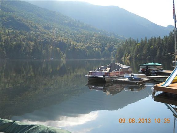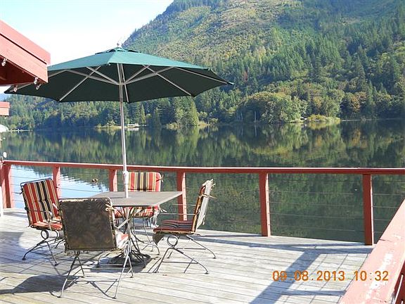A rare opportunity to buy a property on Silver Lake with its own dock. Beautiful setting. Enjoy the deck overlooking the lake, boating on the lake, fishing, swimming, and bird watching. Lakefront property seldom comes up for sale. 2 bedrooms, 1 bath, extensively refinished. Fir floors, spacious kitchen, dining area, two wood fireplaces. Turn key, fully furnished. Water from lake. Permit issued.