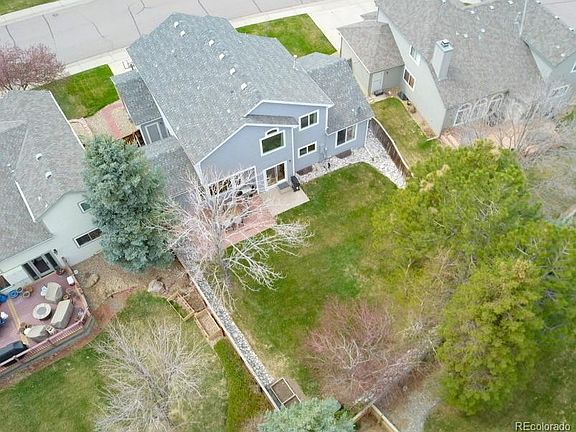 Amazing Highlands Ranch home with 4 bedrooms, 4 bathrooms, main floor study or 5th bedroom, 3 car garage, finished basement, on a cul-de-sac! The main floor features a vaulted living room and formal dining room, private office with French doors and built-in desk and bookshelf by California Closets, updated kitchen, family room with gas fireplace, 1/2 bathroom, laundry room. The kitchen has been updated with slab granite, 42" cabinets, pendant lighting, custom backsplash, undermount sink, beautiful real hardwood flooring. Enjoy the sunny mornings and shaded evenings on the paver patio. Upstairs is the master bedroom, 5-piece bathroom, walk-in closet, and 3 additional bedrooms, and a full bathroom. The basement has a rec room, TV area, desk area, 1/2 bathroom, storage closet, and storage room. You will love the fully fenced, flat backyard. You will sense the pride of ownership of the original owners! This home has all new vinyl windows, newer furnace, newer roof, and fresh paint. Excellent schools: Eagle Ridge Elementary, Cresthill Middle School, Highlands Ranch High School. Conveniently located near C-470 and I-25, Park Meadows Mall, Skyridge Hospital, Eastridge Rec Center, parks, trails, light rail, and the post office. Enjoy access to 4 Highlands Ranch Rec Centers!