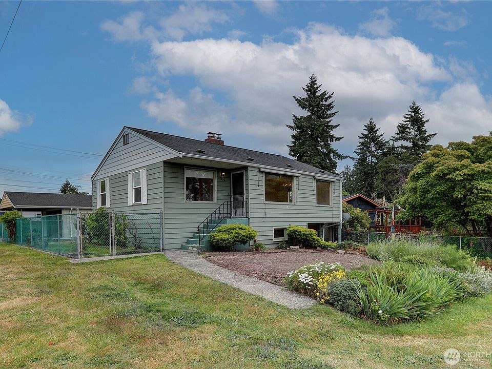Sweet bungalow on a prime corner lot in the heart of vibrant Greenwood minutes to shops, restaurants, parks, transit & the new Trader Joes. Enjoy generous living space w/2 beds,1 bath on main, beautiful hardwoods & F/P. Picture windows bring in an abundance of sunlight & views of the Olympic mountains. Large room, flex space & ample storage in basement, attached garage. Well maintained, 2013 roof. Make your desired updates & enjoy a solid home in a friendly neighborhood. Sunny yard, shed, plus a 2-car detached garage 30X24' w/wide driveway accessed from the street, a rare find! Zoned NR3, this property offers incredible investment potential for DADU, studio or new development in an amazing residential location w/Easy D/T access. A true Gem!