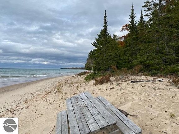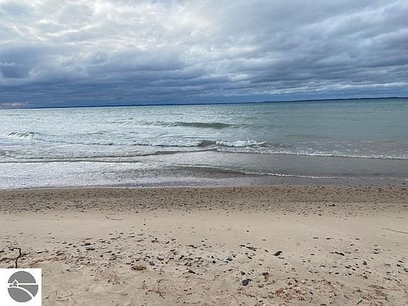 GRAND TRAVERSE BAY 120' SUGAR SAND BEACH - Vintage "log" cottage, 2 BR, 1BA, HUGE loft/2nd floor bunk room! Charming waterside enclosed porch, wood burning stove (also forced air furnace), oversized 3 car newer garage w/power. Enjoy true up north nostalgia on dead end lane, or ideal setting for your new future dream home! Great location between Elk Rapids and Charlevoix and nearby Traverse City!