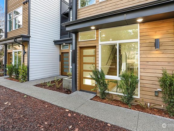 Well built new Townhome in a popular location across from Licton Springs Park. Nicely designed by Greenbuild Development this three level home has large rooftop deck plumbed for gas BBQ. Enter into the comfortable Living/Great Room, an open kitchen an dining area. Upstairs are two nice bedrooms (or office space), guest bathroom with and utility room. Third level is a primary bedroom with walk in closet, dressing room or flex space and modern primary bath with large rain shower enclosed with soaking tub. Sunny South facing yard, nice for people or pups. A good value for a new home in this location. A great place to walk the dog after work. Vacated street makes for a nice space between neighbors. Unit E is now sold. Sharp!