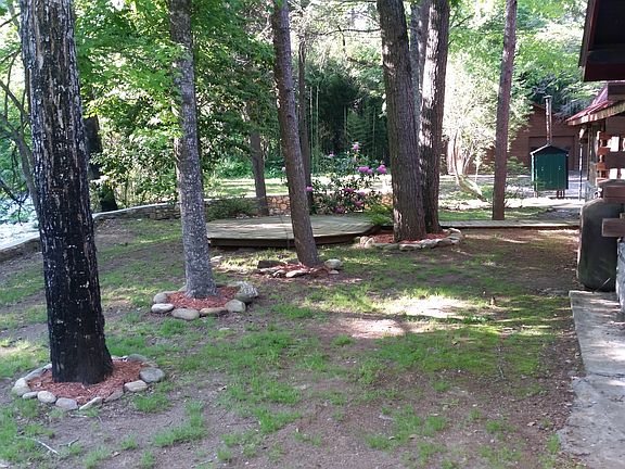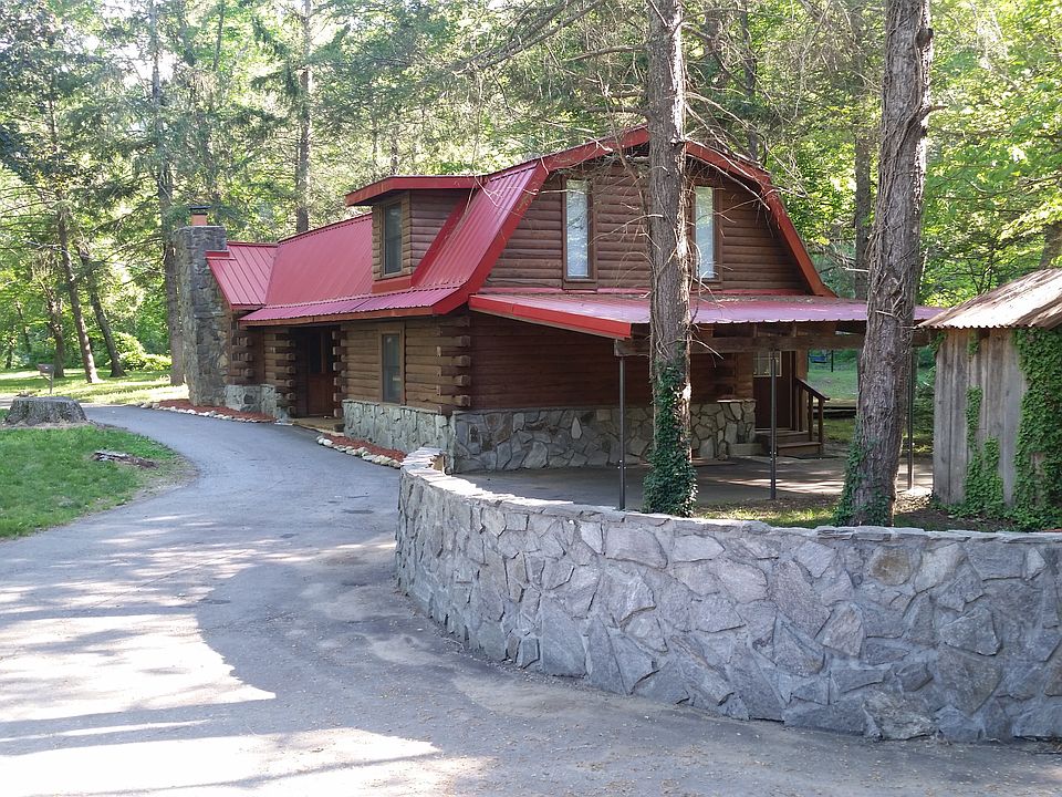Special log cabin on 1000+ ft of RIVER FRONTAGE. Two Large detached workshops / garages, custom stone work, Two Fireplaces, like new kitchen, cathedral great room, floor to ceiling massive rock FP. Flat yard, custom patio along river. Tube, fish, swim & enjoy the soothing sounds in this specially located log home. NEW OUTDOOR WOOD FURNACE WAITING TO PUT YOUR NAME ON THE WARRANTY. 30 mins to Asheville.25 mins to airport.Can take almost any RV up there with ease.Flat level ground.5 miles to 2 hospitals.Major medical center 25 minutes away.Appraised price.Seller open to reasonable trade of property or valuables or owner finance / seller financing available / owner willing to carry some paper / FSBO / terms / exchange.